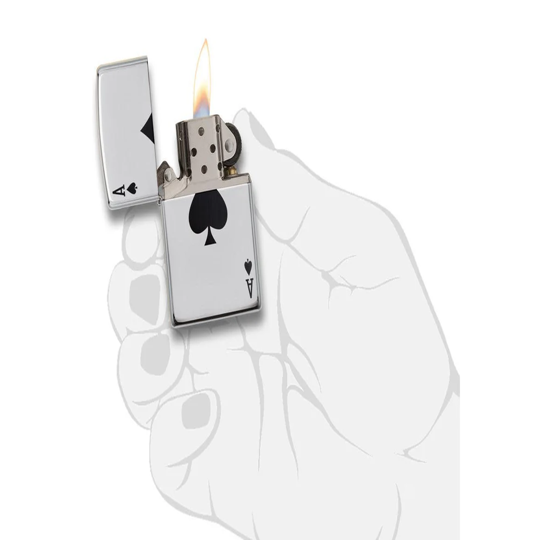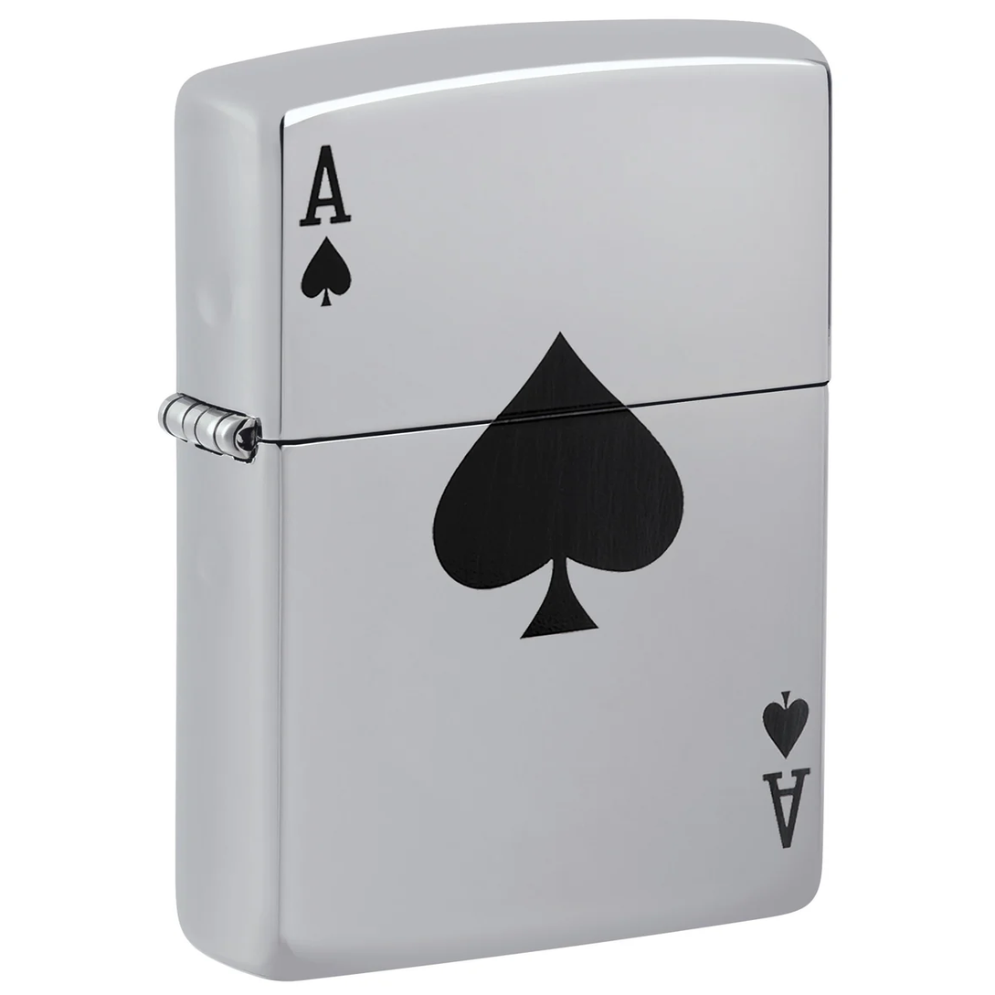 Make a bold statement with this Zippo Lucky Ace Design Lighter, featuring a sharp chrome finish and striking Ace of Spades artwork. Ideal for collectors or as a meaningful gift.