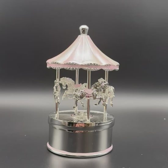 Celebrate your little princess with this Engraved Pink Musical Carousel, a rotating and musical keepsake that brings timeless charm to any nursery. Designed in soft pink and silver enamel, this beautiful carousel turns gracefully while a gentle melody plays — a magical gift that captures the innocence and joy of childhood.