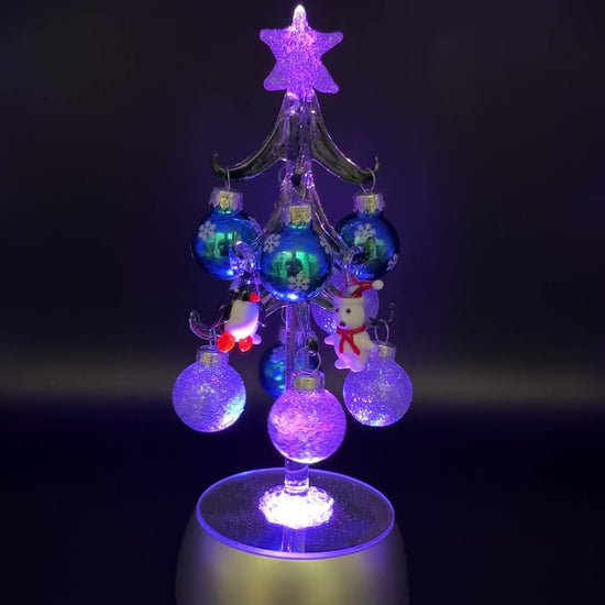 Light-Up Glass Christmas Tree with Blue & Silver Ornaments – Personalized Christmas Gift Canada, Unique Holiday Decoration Mississauga