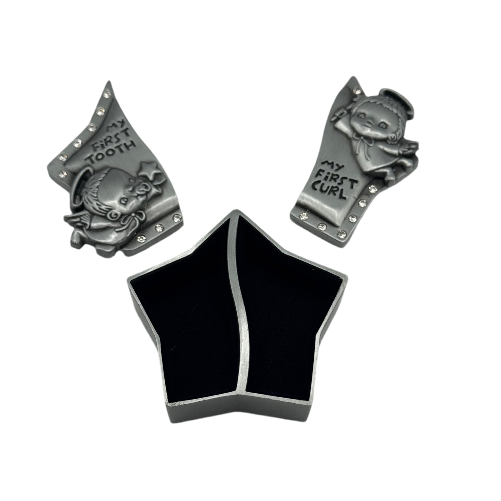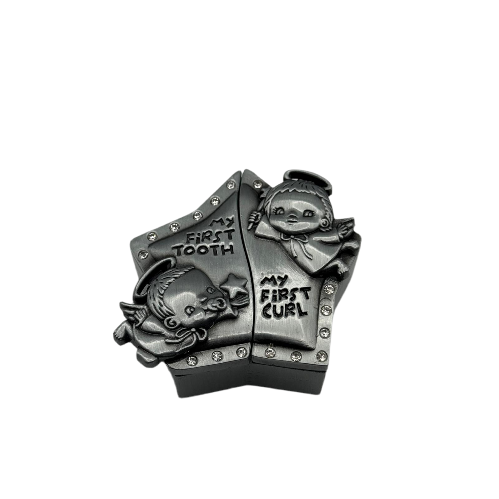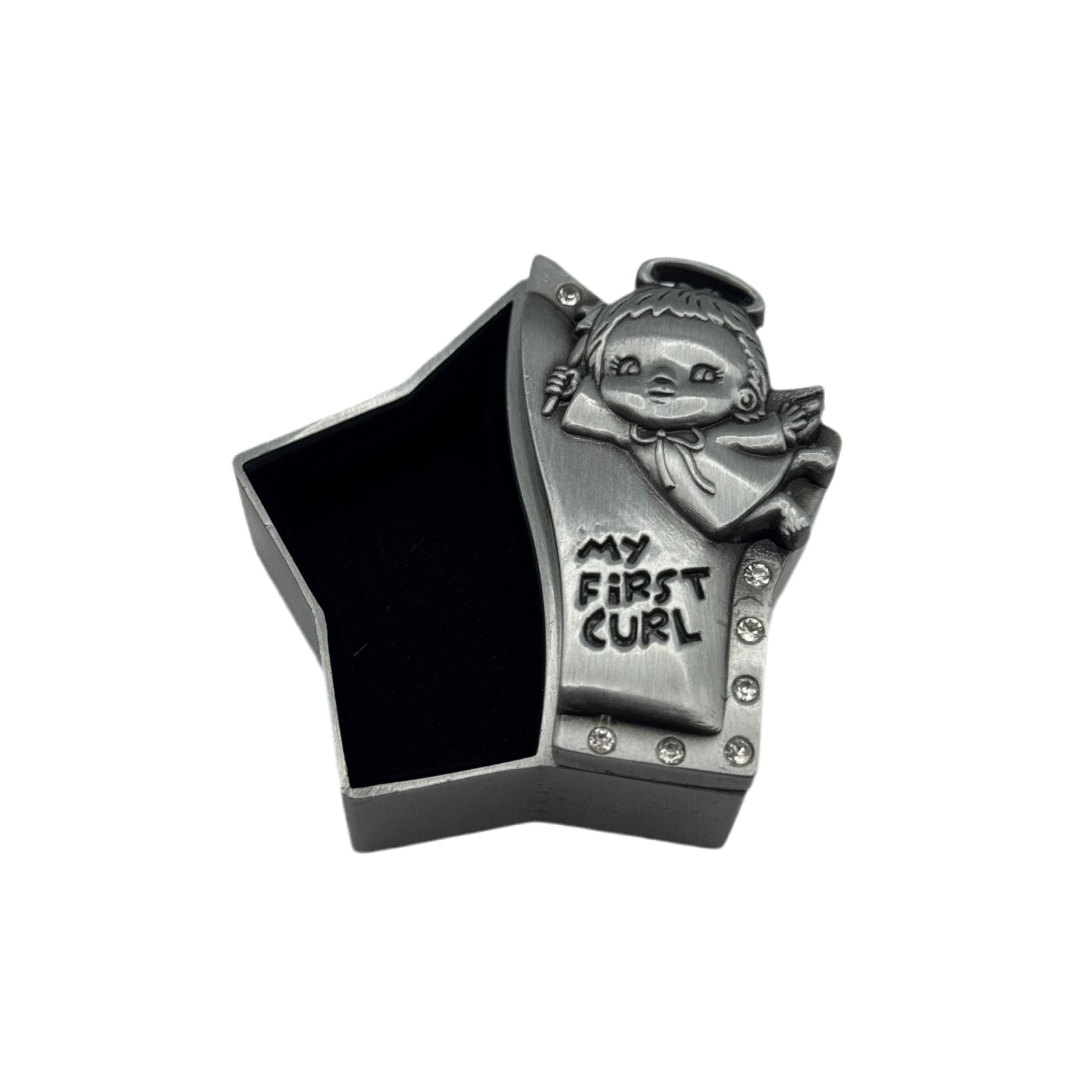 Preserve precious memories with our personalized "My First Curl" keepsake box, designed to hold your baby's first curl in a beautifully crafted star-shaped box. This stunning keepsake box features intricate engravings and delicate rhinestone accents, making it a perfect gift for parents or grandparents. Crafted from durable materials, it ensures that this special memento will last for years to come. We offer same-day engraving and fast shipping across major Canadian cities including Toronto, Vancouver, Montreal, Calgary, Ottawa, and more. Whether you're celebrating a baby's first milestone or looking for a heartfelt gift, this engraved keepsake box is a unique and meaningful choice. Capture the beauty of childhood moments with this timeless treasure, and make a lasting impression with a personalized touch that will be cherished for a lifetime.
